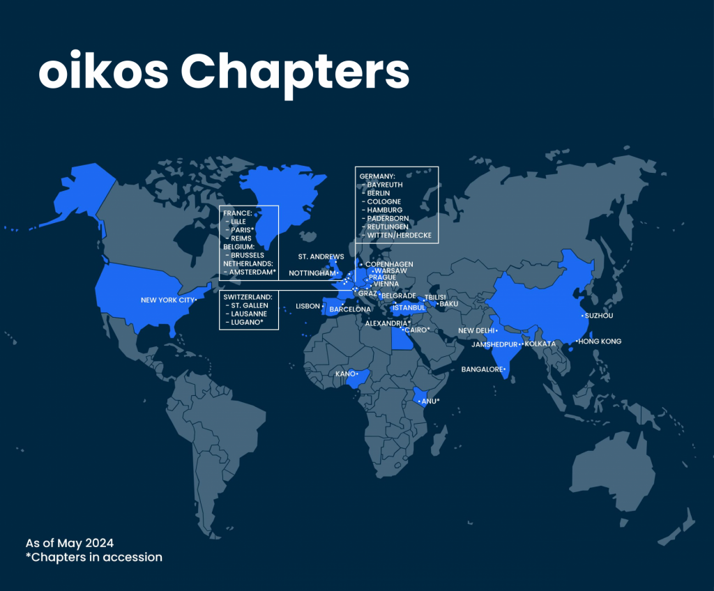 oikos Graz is part of the global network of oikos International. Since the first oikos group was founded in St. Gallen in 1987, oikos International has been involved in projects for a sustainable economy worldwide. As an umbrella organization, oikos International has supported and promoted the network since its founding in Switzerland in 1998. Today, local oikos groups are driving the change towards sustainable leadership around the world. The network’s student change agents work to transform management and business education in 39 local groups in over 20 countries worldwide. With over 1.000 active members and over 10.000 alumni from all over the world every year, the network forms a strong community.
